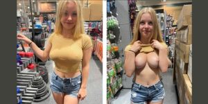 On the other hand here we have Samantha. Her white tits are huge and that can’t be denied by any means. In this public nude photo this blonde was a little drunk. Because of the effects of alcohol, she decided to get rid of her blouse and pink bra.